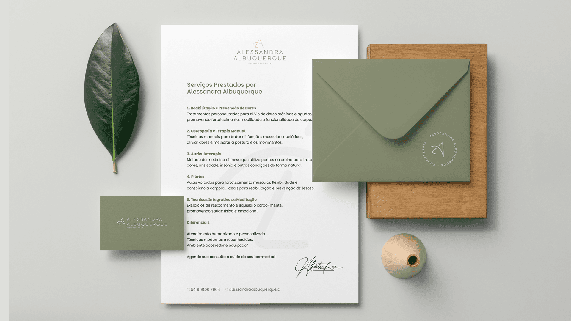 Em 2025, tive o prazer de desenvolver a identidade visual para Alessandra Albuquerque. O desafio foi traduzir sua essência em um design que transmitisse acolhimento e fluidez, mantendo a clareza visual necessária para sua atuação profissional.